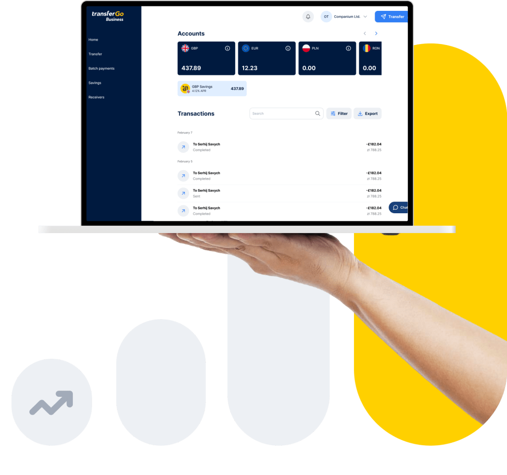 To open a business savings account, you first need a TransferGo Business Account. Look for the sign-up button at the top-right corner of our website and follow the instructions.