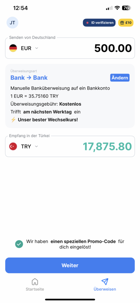 Hier bei TransferGo versuchen wir immer, dir die besten Wechselkurse anzubieten. Wir verwenden Mittelkursraten für unsere Währungsumrechnungen und fügen einen kleinen Aufschlag (oder eine Marge) auf den Wechselkurs hinzu, um unsere Betriebskosten zu decken. Wir sind bekannt für unsere Transparenz in Bezug auf Kurse und Gebühren; wir zeigen dir immer den Umrechnungskurs im Voraus, bevor du deine Überweisung abschließt.