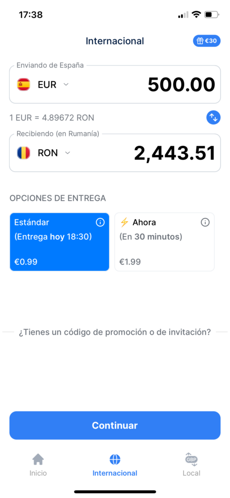 La mayoría de las transferencias tardan entre 2 y 3 minutos. Puedes enviar dinero incluso los fines de semana.