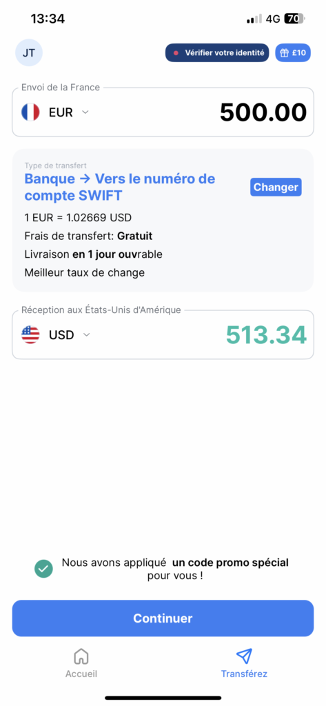 Très bon service, ils m’ont contacté directement lorsqu’il y avait un problème et l’ont résolu très rapidement. J’ai effectué un transfert international en seulement quelques heures.