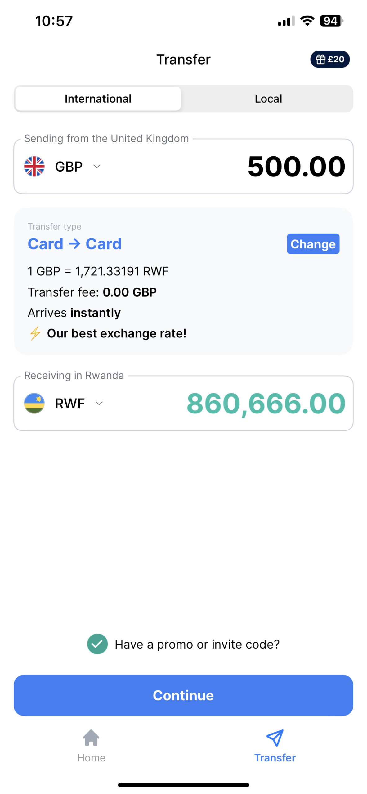 Your first 2 transfers to Rwanda from the UK are free, and our fees stay low after that. The receiver gets the exact amount that our app tells you. No hidden transfer fees, no nasty surprises.