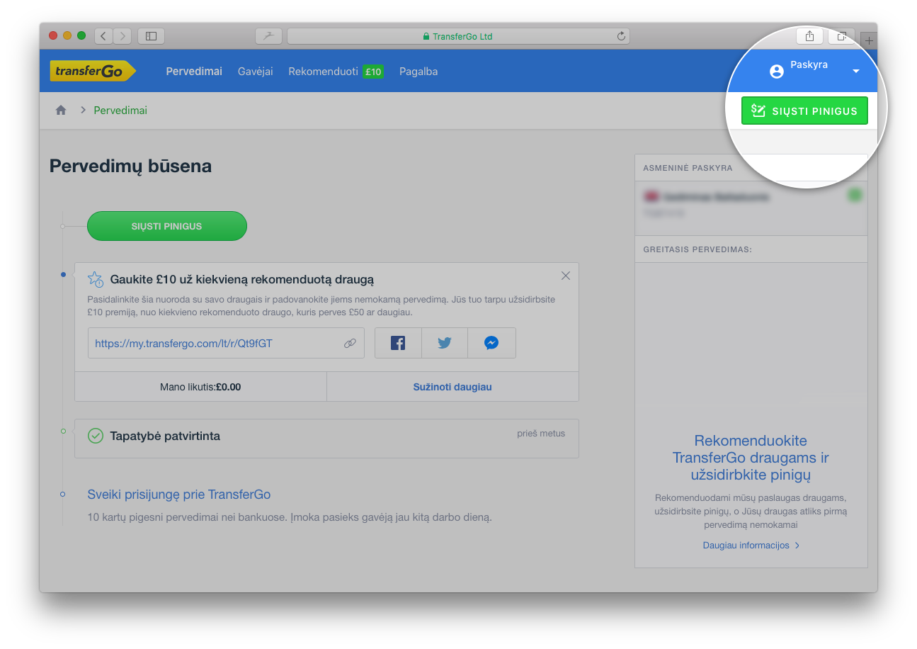 Siųskite meilę ir pinigus su TransferGo. Mėgaukitės greitais, saugiais ir paprastais pervedimais. Pakvieskite savo draugus prisijungti prie TransferGo ir užsidirbkite £20. Prisijunkite jau šiandien! ?