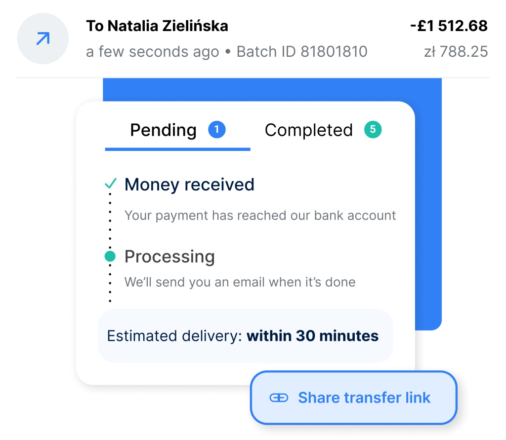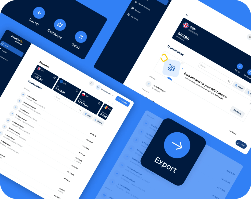 Obniż koszty i usprawnij operacje dzięki płatnościom zbiorczym TransferGo. Za pomocą jednego lokalnego przelewu możesz zapłacić nawet 50 odbiorcom w różnych krajach. To idealne rozwiązanie do zarządzania wynagrodzeniami, opłacania faktur dostawców czy realizacji innych płatności grupowych.