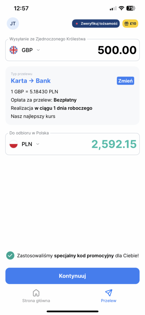 Wysyłanie pieniędzy po dobrym kursie oznacza, że otrzymujesz najlepszy możliwy kurs wymiany. Gdy zauważysz korzystny kurs wymiany na rynku, korzystając z narzędzia do przeliczania walut TransferGo, po prostu zaloguj się na swoje konto i wyślij przelew po tym samym kursie.
