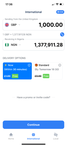 Most transfers take 2-3 minutes! You can even send money on the weekend.