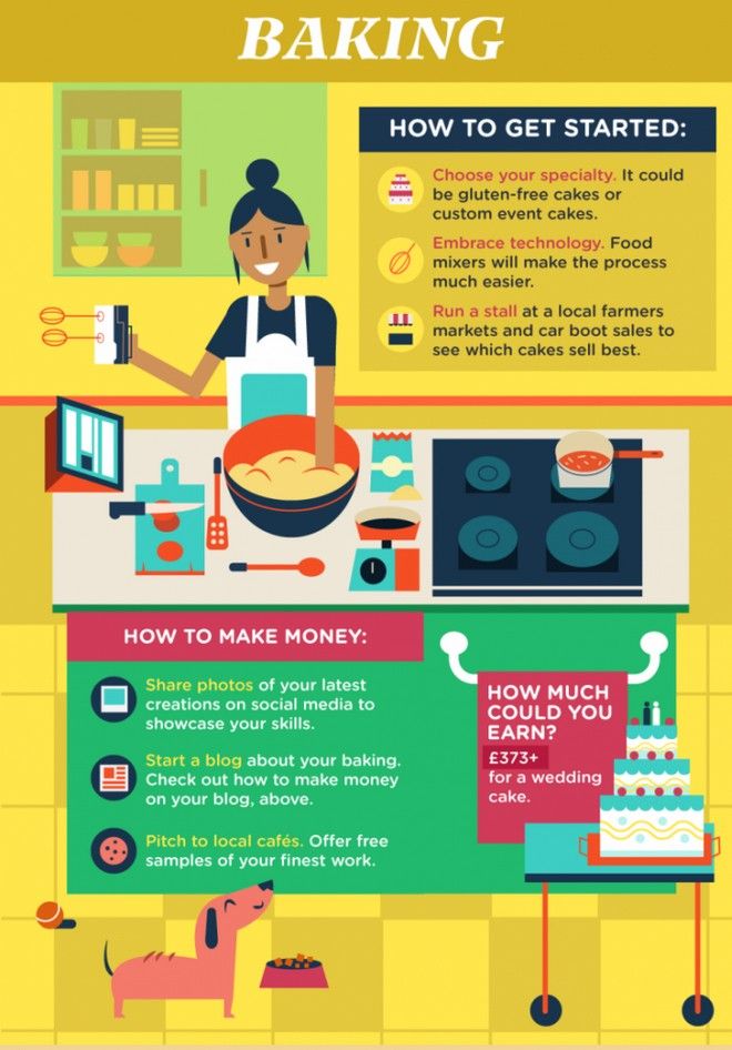 Dacă oamenii comentează în mod constant cat gătesti de bine, ia în considerare abilitățile din bucătărie si du-le la nivelul urmator, prin vânzarea celor mai bune creații tale. Un număr mare de marci de renume mondial au început cu performanțele bucătarilor la ei acasă și prin vânzarea produselor de panificație la prieteni și vecini.