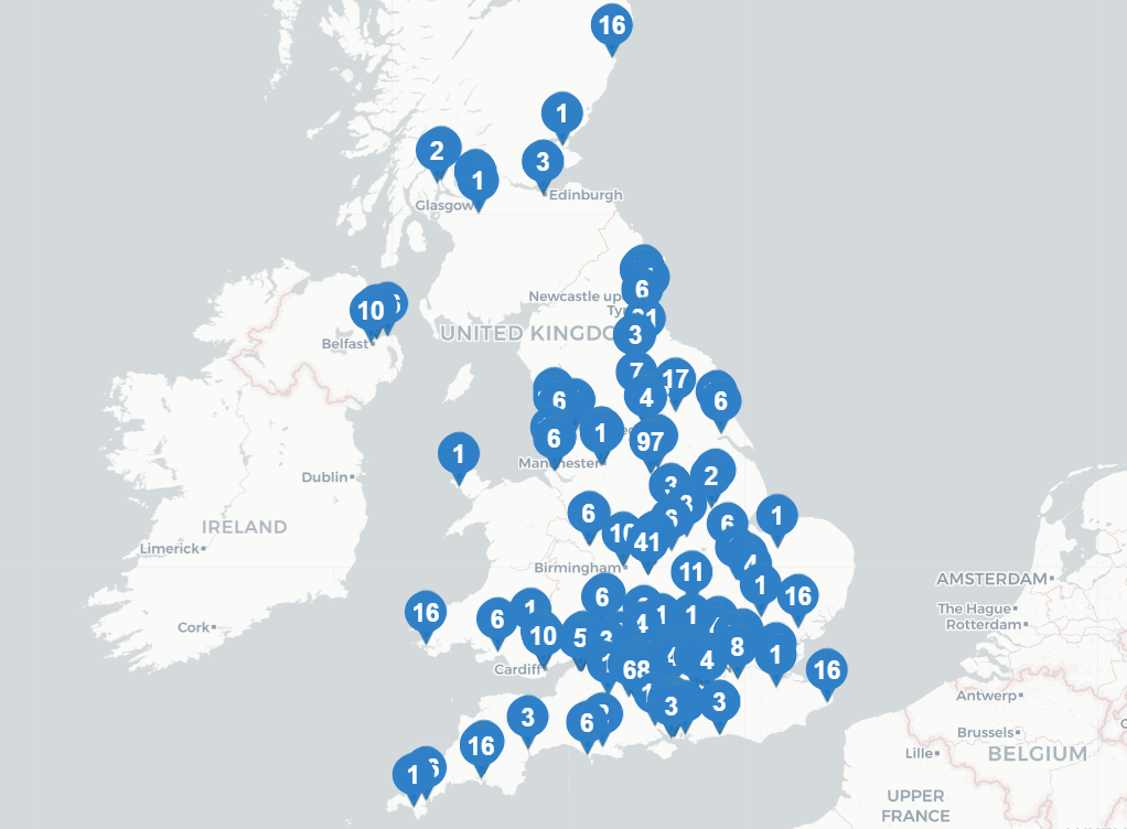 Este disponibilă și o hartă a posturilor vacante din Serviciul Civil, asemeni pozei alăturate, de pe întreg teritoriul Marii Britanii, în timp real și ușor de accesat.