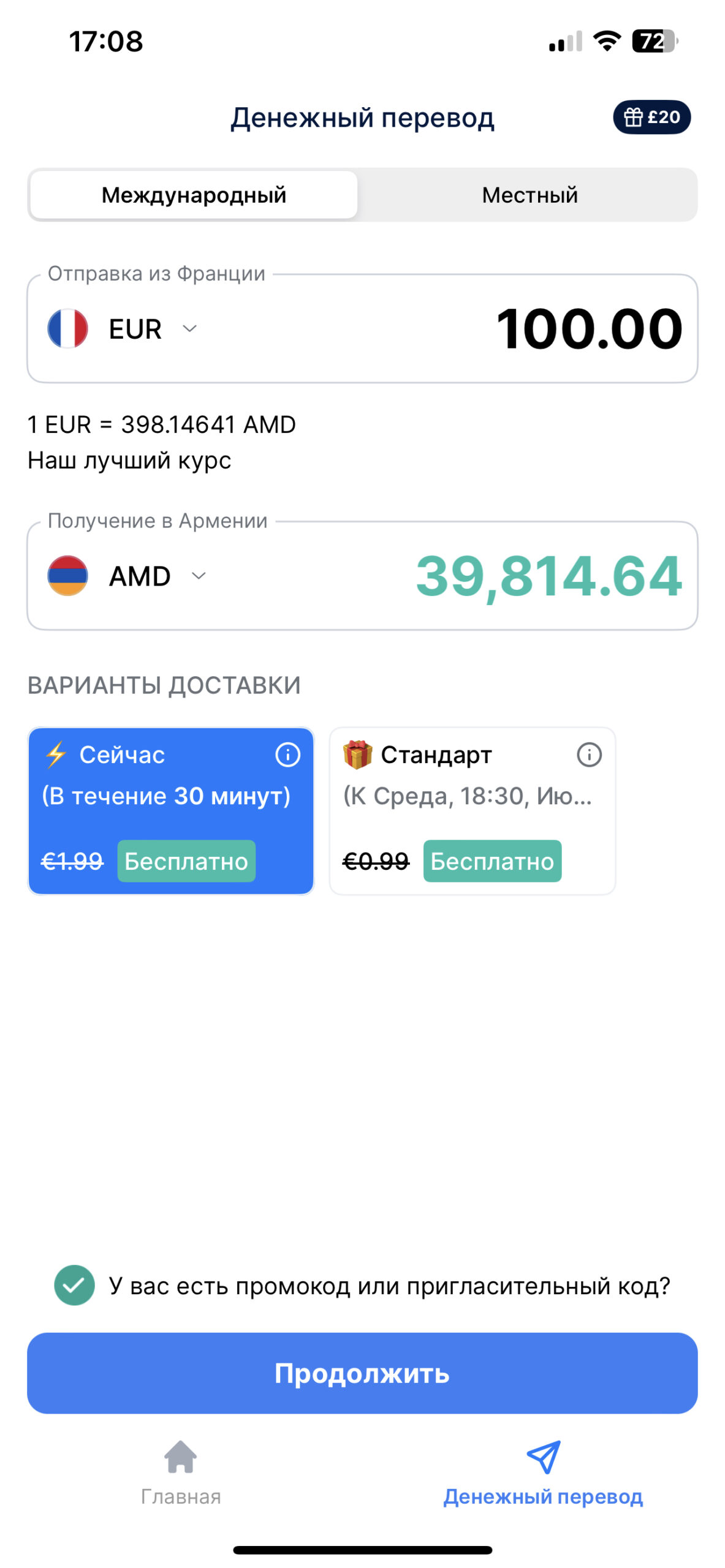 Напоминаем, что первые два перевода денег в Армению бесплатные не зависимо от варианта доставки «Стардант» или «Сейчас».
