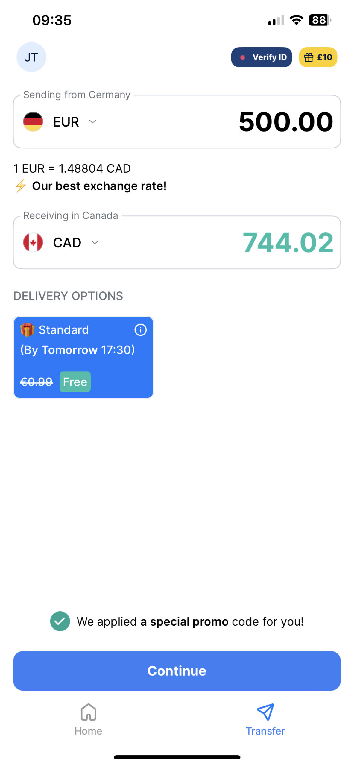 Here at TransferGo, we do our best to send your international money transfer to Canada with the best exchange rates quickly. The delivery time depends on which delivery method you choose. If you choose ‘Standard’, the money will arrive within one working day.