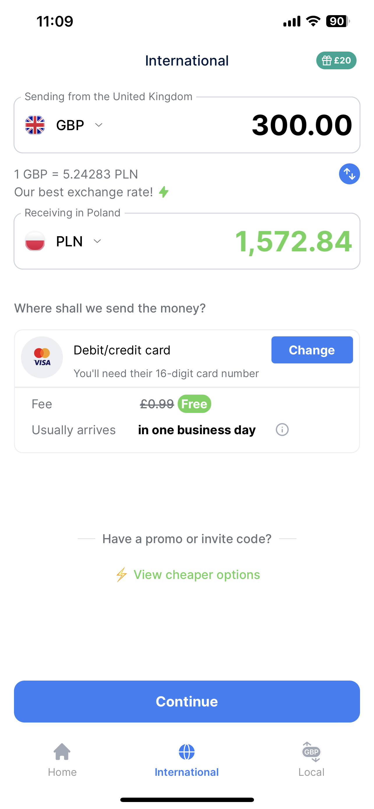 Our fastest option is instant, which usually arrives in 2-3 minutes. You can also make a transfer the next day, but instant money transfers from Great Britain to Poland are free right now—so why wait?