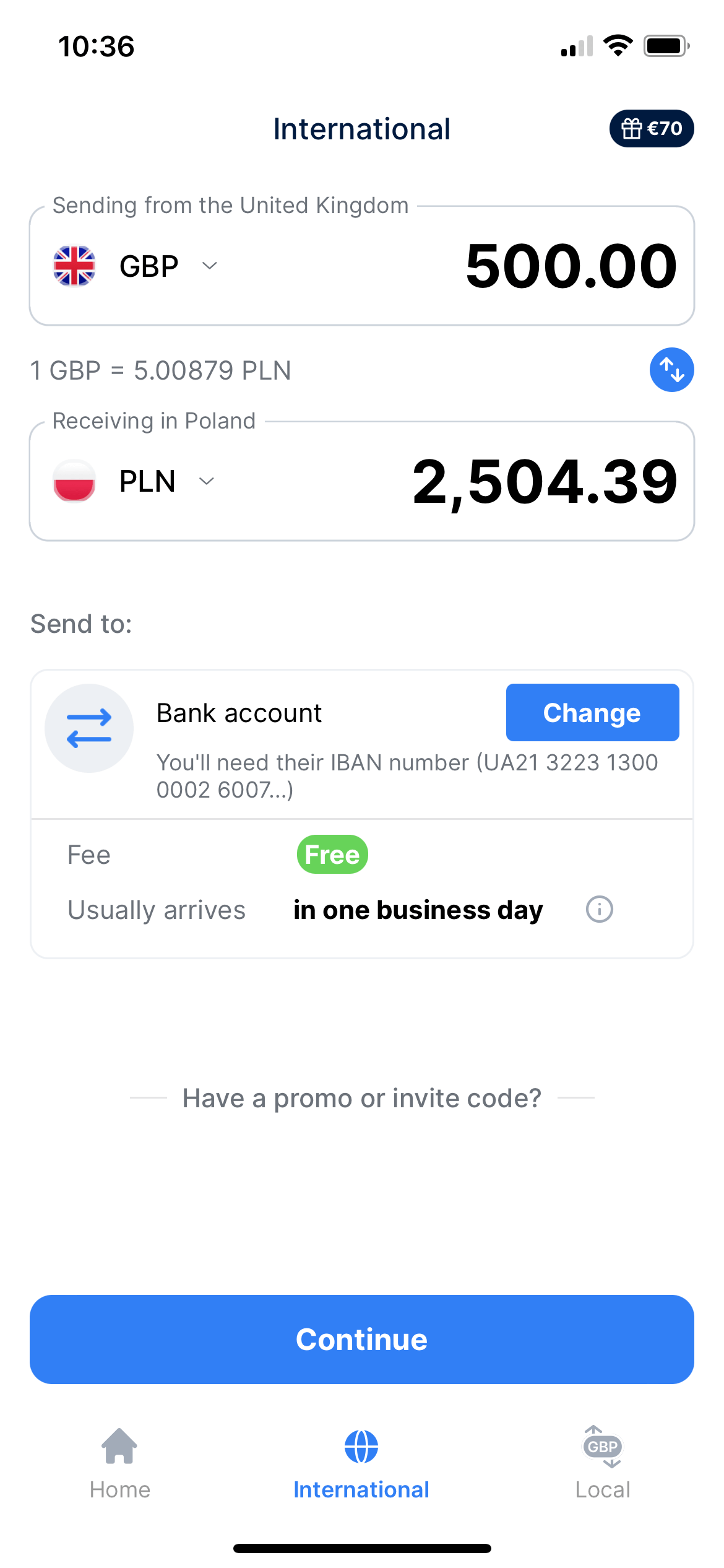 Sending money from Great Britain to Poland is currently free, including card-to-card transfers, transfers to bank accounts, and more. We do not hide commissions. The receiver gets the exact amount that our app tells you. No hidden fees, no nasty surprises.