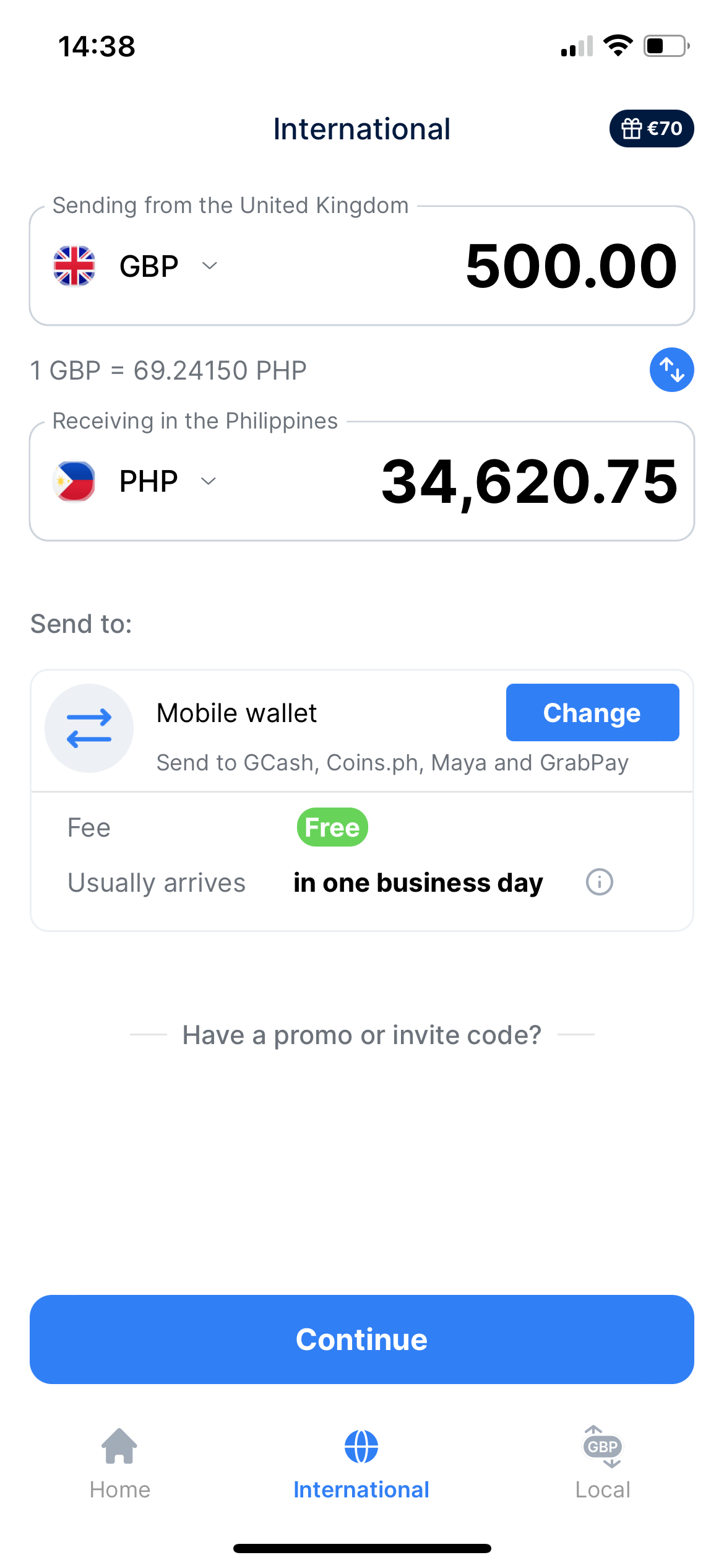 If you’re making a bank transfer, start your order in the TransferGo app, then use your own banking app to send TransferGo the money—using the bank details they send you. Once you’ve done that, let TransferGo know in the app, and they’ll send the money to your receiver in the Philippines.