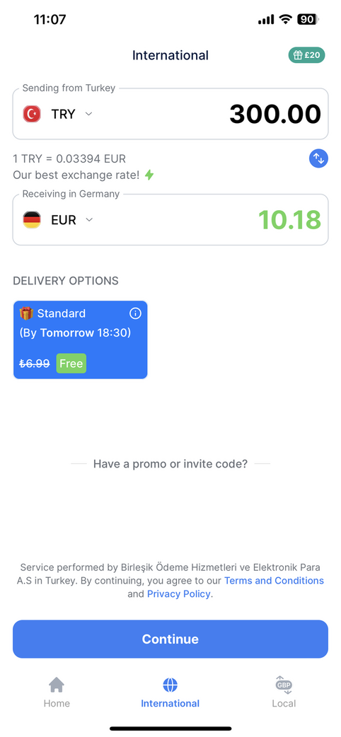 Standart gönderim seçeneğimiz ile alıcının banka hesabına bir iş günü içerisinde para transferi yapabilirsiniz.