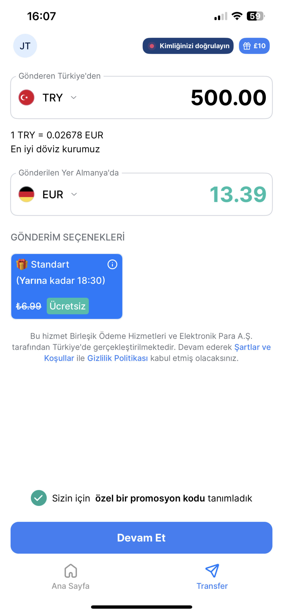 En hızlı teslimat süremiz anında olup, paranız genellikle 2-3 dakika içinde ulaşır. Ayrıca, yurt dışına para gönderiminde ertesi gün teslimat seçeneğini de tercih edebilirsiniz. Şu anda ilk iki para transferiniz ücretsiz, üstelik anında gönderim ile. O halde neden bekleyesiniz ki?