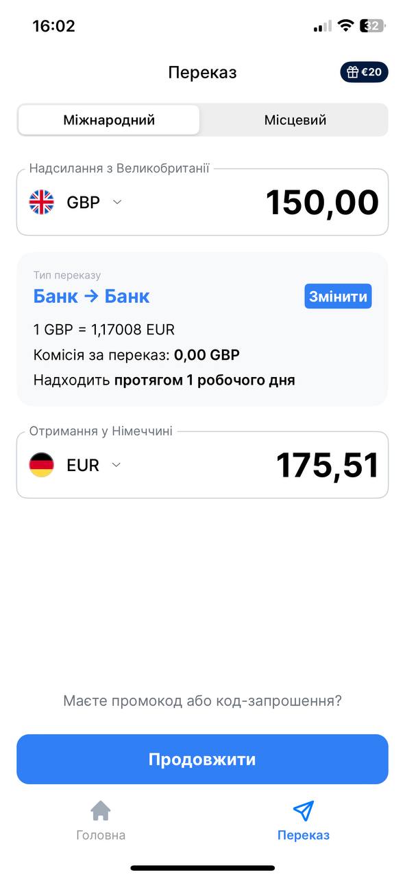 Перші 2 перекази грошей безкоштовні! Після цього наші комісії залишаються низькими. Одержувач отримує точну суму, яку ви бачите у додатку при створенні переказу. Без прихованих комісій і неприємних сюрпризів.